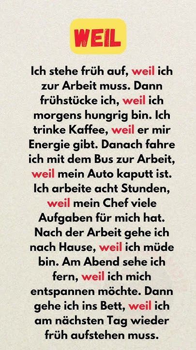 kidelicia Учите немецкий язык с нуля: Примеры с ‘weil’ для A1-A2 Follow me Source by jlaravaladares VER RECEITA COMPLETA